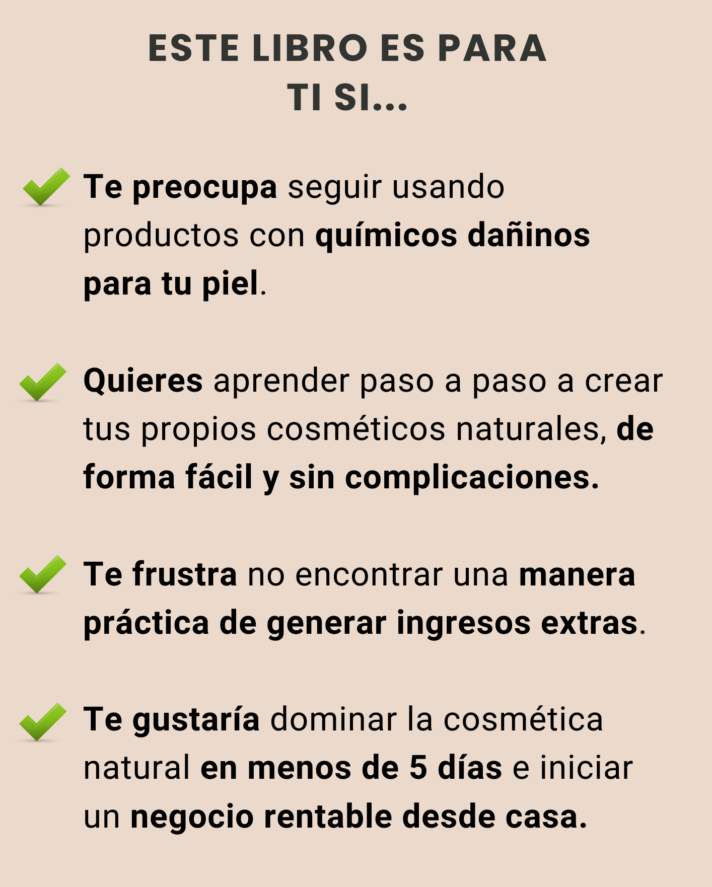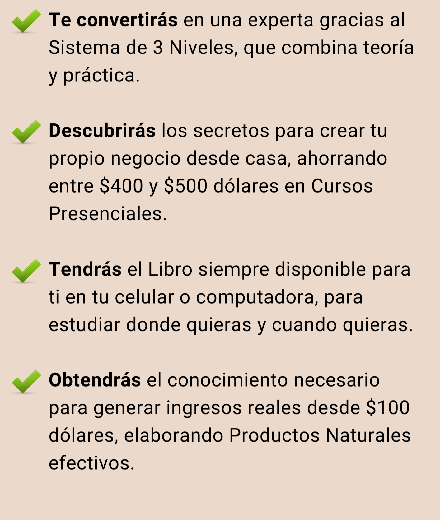 Porque aquí tienes todo en un solo lugar: claro, organizado y probado. Te ahorra horas de frustración y es como tener una maestra de cosmética natural disponible 24/7, para guiarte a tu ritmo cuando quieras y donde quieras.